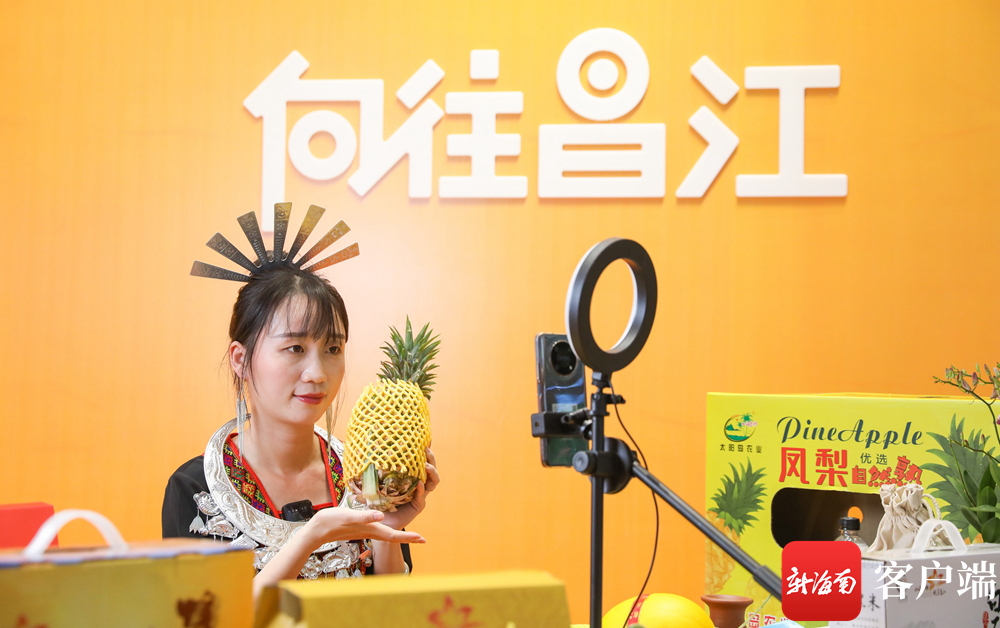 冬交会昌江馆,电商直播推介昌江特色产品。记者 李昊 摄