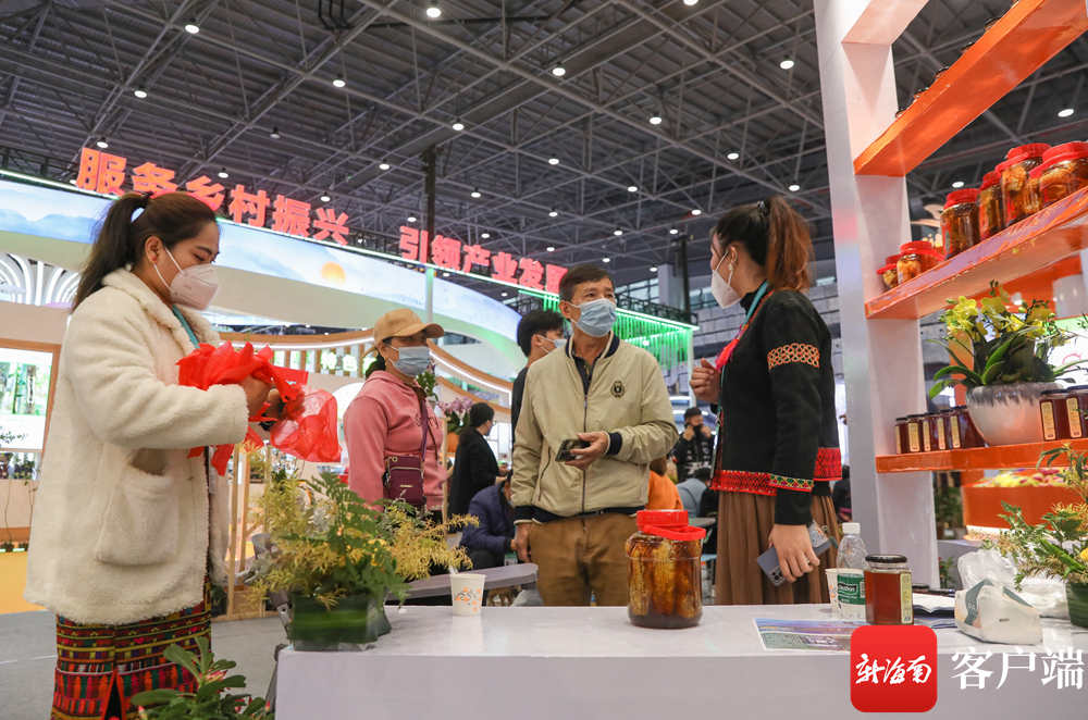 冬交会昌江馆,参展游客、客商在选购特色产品。记者 李昊 摄