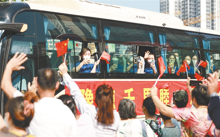 九月五日上午,海口市民夹道送别河南援琼医疗队队员。海南日报记者 李天平 摄