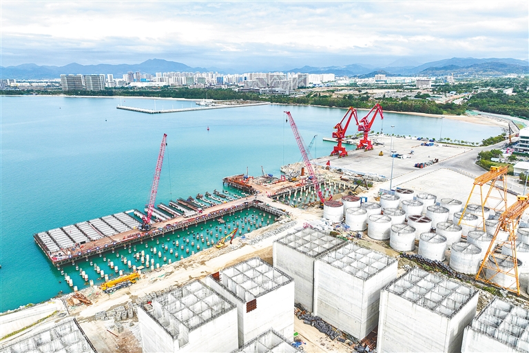 建设中的三亚南山港公共科考码头项目。 海南日报记者 王程龙 摄