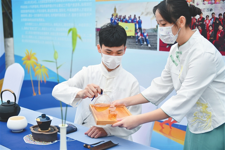 海南省技师学院在老城校区举行康养高技能人才培养交流活动,图为现场技能展示环节。海南日报记者 张茂 实习生 杨哲 摄