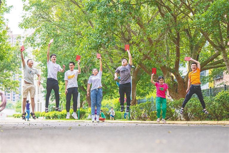 在海南(海口)特殊教育学校,视障学生庆祝毕业。 海南日报记者 袁琛 摄