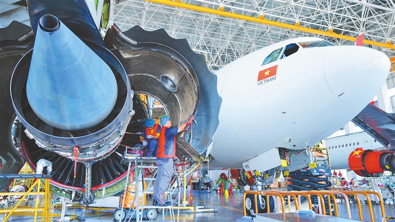 为何短短的三年内,海南自由贸易港能够打造出航空维修的“金字招牌”?王海烨称,得益于海南自由贸易港优惠政策支持,让高价值航材的税负成本降低,不仅直接减少了维修资金占用,还为客户节约了维修成本和时间。另外,海南具有得天独厚的地理优势,作为“一带一路”重要支点和西部陆海新通道的重要枢纽,其航线近可“面向东盟、发展日韩、兼顾南亚”,远可“通往欧洲、中东、非洲”。