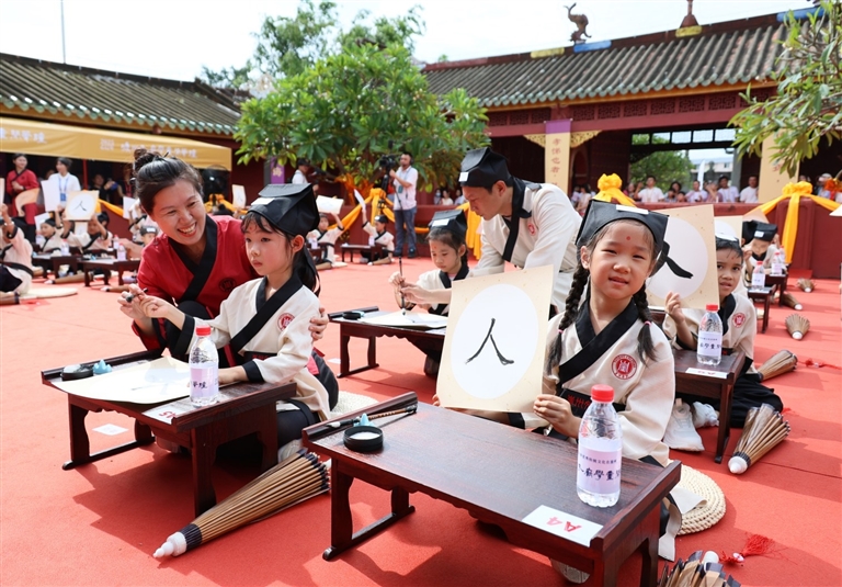 礼乐响起,古崖州的千年文化沁润人心,传承与创新间,一张城市文化的名片正逐渐擦亮;学童们的人生,正如启蒙描红,在一撇一捺中,写好人生的第一个“人”字,迎接更美好的未来……
