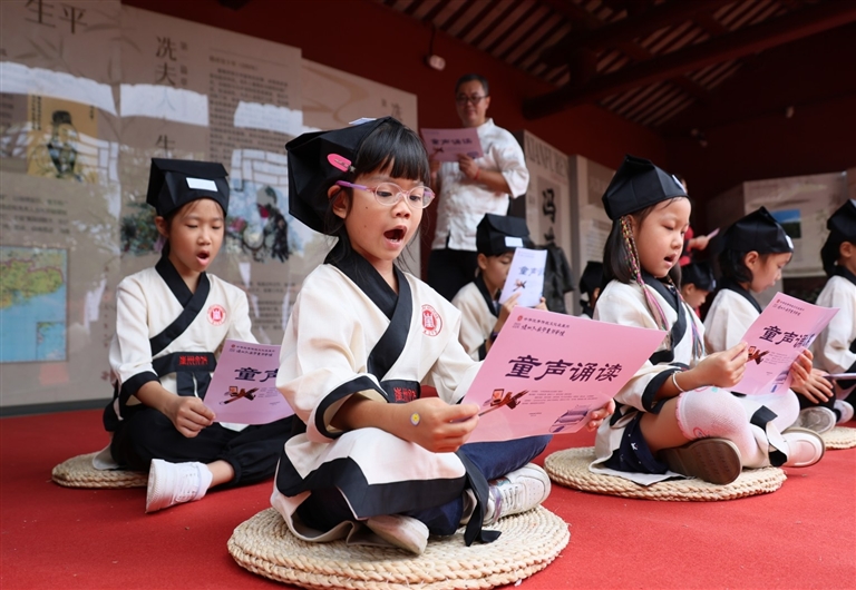近日,优秀书画作品巡展及“儒学经典诵”读书会活动在市第九小学举办。100余名一年级学生在老师的带领下,学习儒家礼仪,感受国学文化魅力。该校教师赵秋迪说:“这些学生都是刚从幼儿园升入小学。在开学后不久,举办这样的读书会,对于孩子们养成良好的品德和习惯起到了极大的帮助,将为他们今后的学习生活打下坚实基础。”