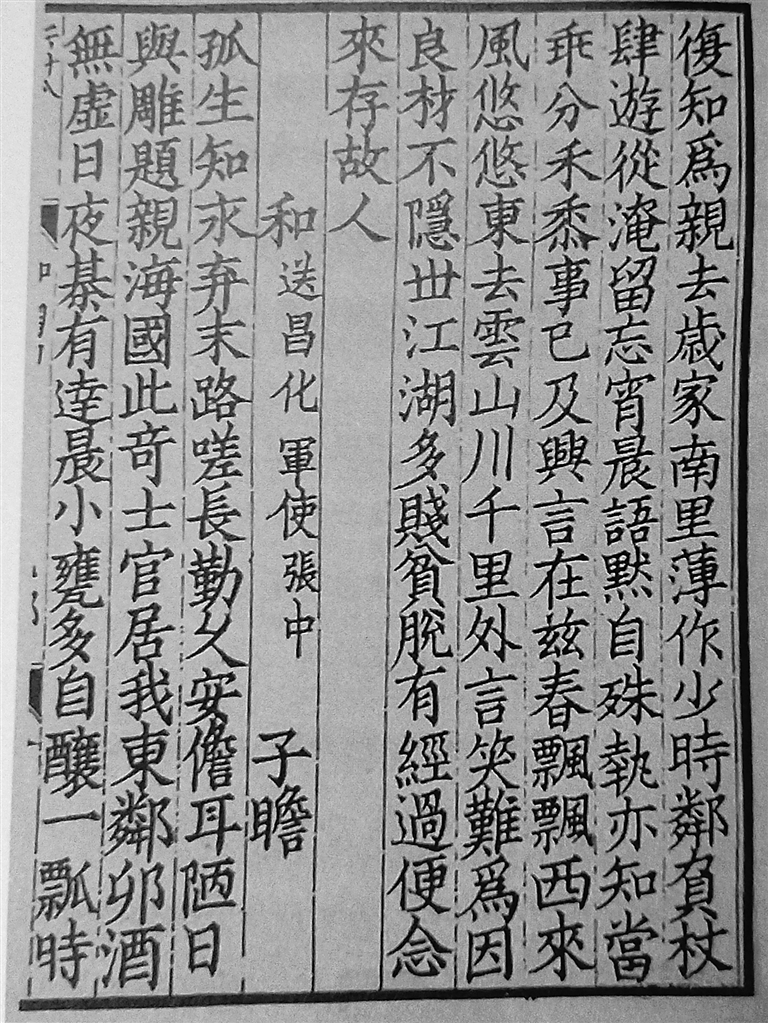 苏轼的和陶诗《送昌化军使张中》。 影印宋刊本《东坡先生和陶渊明诗》