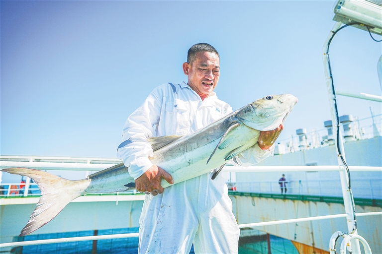 2024年1月5日,乐东龙栖湾海洋牧场渔获丰收,这是在深远海养殖10个月的军曹鱼。
