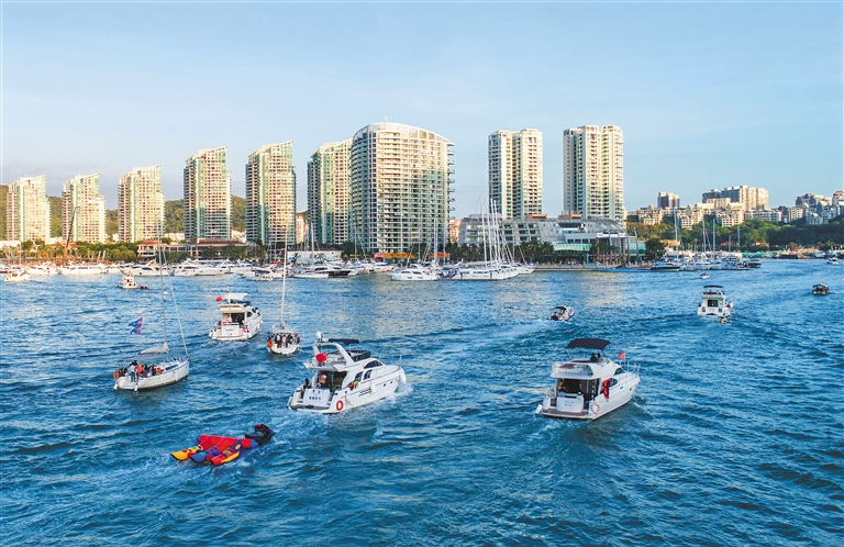 2020年1月7日傍晚,游艇载着游客返回三亚鸿洲游艇码头。据悉,2019年6月至11月,全省新增游艇俱乐部6家,同比增长50%;注册登记游艇95艘,同比增长33%。海南日报记者 武威 摄