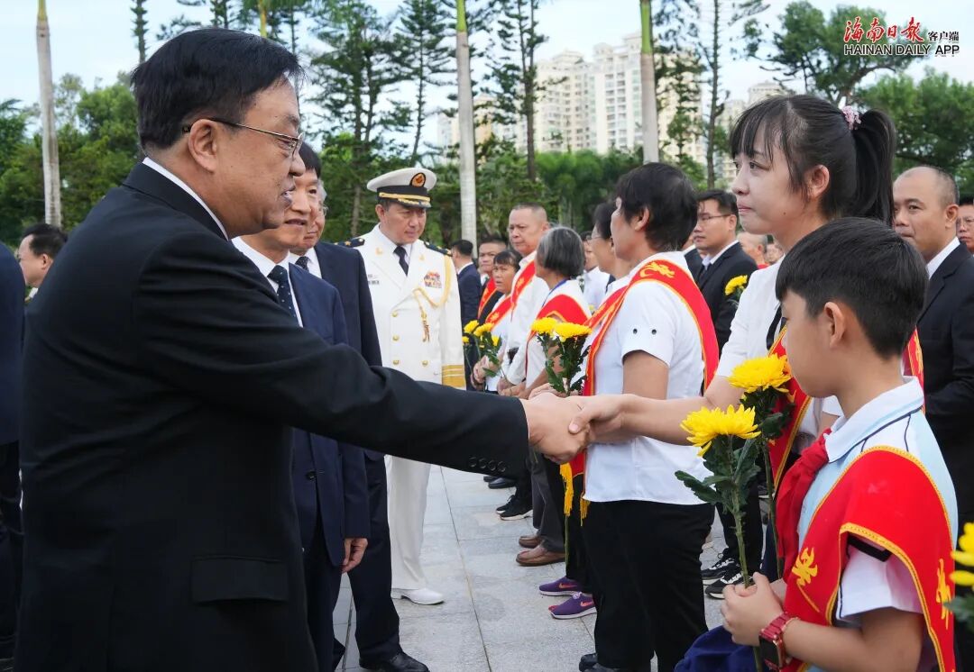 今年是中国人民抗日战争暨世界反法西斯战争胜利80周年,海南解放75周年,9月30日是我国第12个烈士纪念日。海南省向英雄烈士敬献花篮暨《烈士光荣证》颁授仪式当天在海口市解放海南岛战役烈士陵园隆重举行。省委书记、省人大常委会主任冯飞,省委副书记、省长刘小明,省政协主席李荣灿,省委副书记、政法委书记杨晋柏等在职省军级领导与全省各界代表一起出席仪式。