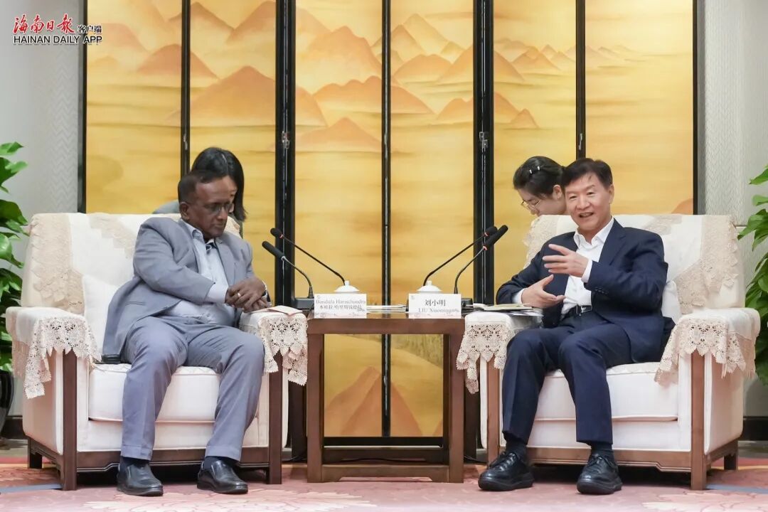 9月30日,省长刘小明在海口会见斯里兰卡南方省省长本杜拉·哈里斯钱德拉一行。