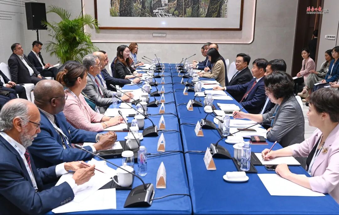 冯飞、刘小明代表省委、省政府欢迎各位国外自由区代表来琼参会,介绍了海南自由贸易港开放政策和高质量发展情况。冯飞表示,自由区是当今全球经济发展最具活力的地区,此次大会汇聚世界自由区代表共同探讨合作与发展,为全球自由区经验互鉴和规则对接搭建了重要平台。海南地处中国内地和东南亚两个最活跃市场交汇点,具有独特开放政策优势,正对接国际高标准经贸规则,建设“两个基地”“两个枢纽”“两个网络”,加快高质量建设中国特色自由贸易港,努力打造引领中国新时代对外开放的重要门户。海南自由贸易港定于今年12月18日启动全岛封关运作,发展机遇无限,希望依托世界自由区组织大会等平台,加强与世界各自由区的规则对接、经验互鉴,建立更紧密伙伴关系,推动更多实质性合作项目落地,同世界共享发展机遇。