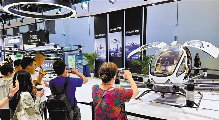 4月18日,观众在第五届中国国际消费品博览会低空经济展区参观。 经济日报记者 潘世鹏摄
