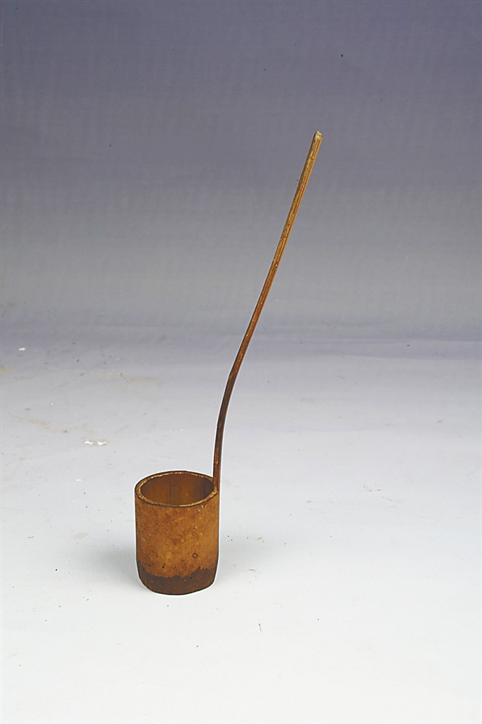 海南省博物馆藏有黎族陶锅、陶碗、椰雕锡胆酒杯,以及苗族木饭铲等老物件。这些物件上大都有使用留下的痕迹,也许曾出现在“三月三”的长桌宴上——陶锅可能装着五色饭,陶碗或许盛着鱼茶,椰雕锡胆酒杯应该留有山栏酒的香气。