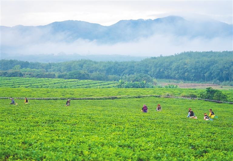 白沙黎族自治县原生态茶园小镇,村民在茶园里采茶。海南日报全媒体记者 李天平 摄